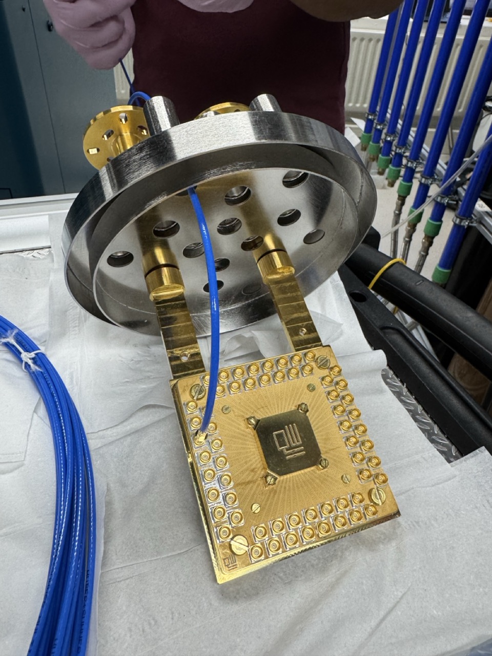 Within the Qubit Lab, Qblox uses the Soprano-D5 processor as a stable, high-quality testbed for validating and refining its control electronics. The setup allows the team to benchmark key performance parameters such as noise levels, flux control, and gate fidelity, under realistic operating conditions.